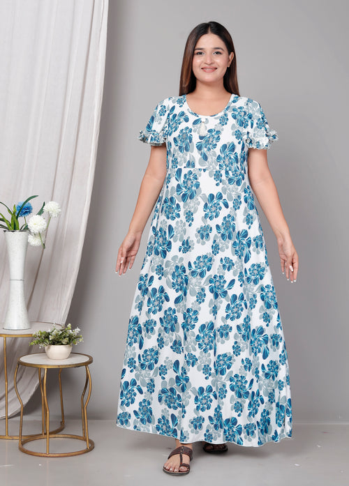 Short Sleeves Cotton Nightgown Blue A-line XL